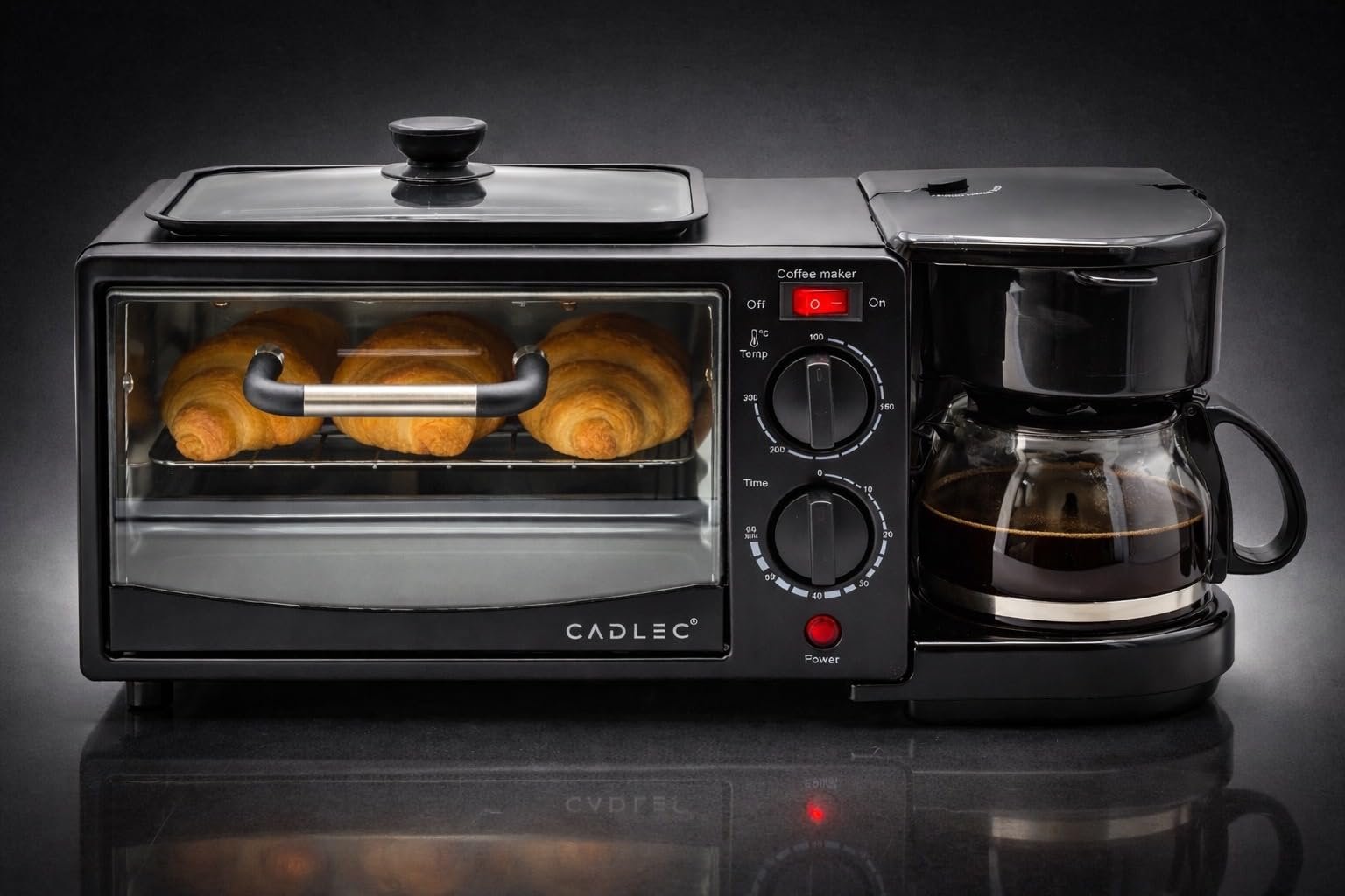 Cadlec MultiChef Pro 3 in 1 Breakfast Maker With Oven Toaster Griller, Coffee Maker, Frying Pan | Adjustable Temperature & Timer, Bake, Grill & Toast- Black