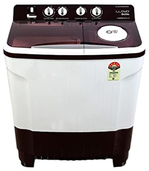 Lloyd 8 kg 5 Star Semi Automatic Top Load Washing Machine |1300 RPM | Soak Function | 3 Wash Programs | Swift Dry | Magic Filter (GLWMS80IDMDE, Maroon and White)