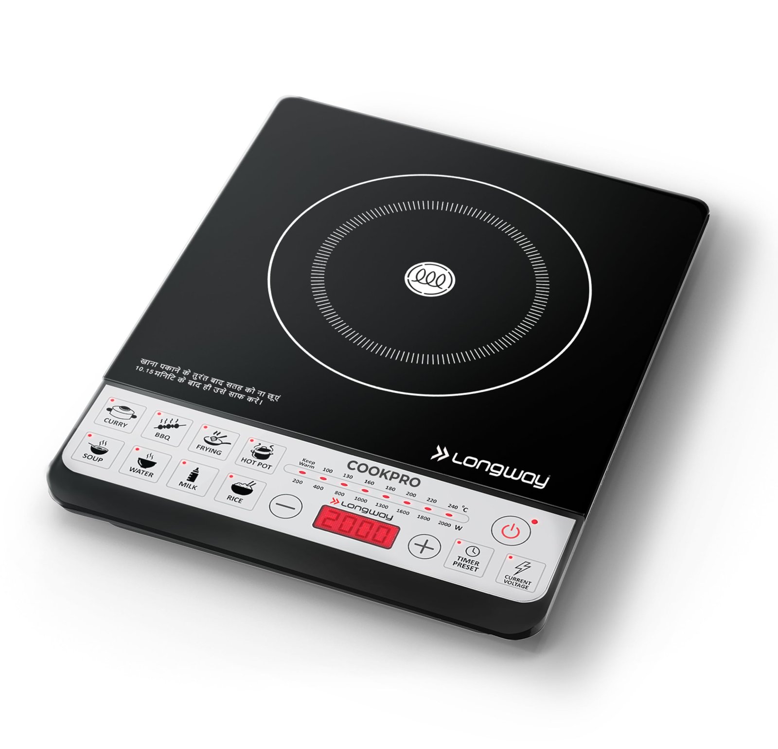 Longway Cookpro IC 2000 Watt Induction Cooktop with Auto Shut-Off & Over-Heat Protection With 8 Cooking Mode & BIS Approved | 2 Years Warranty (Black, Push Button)