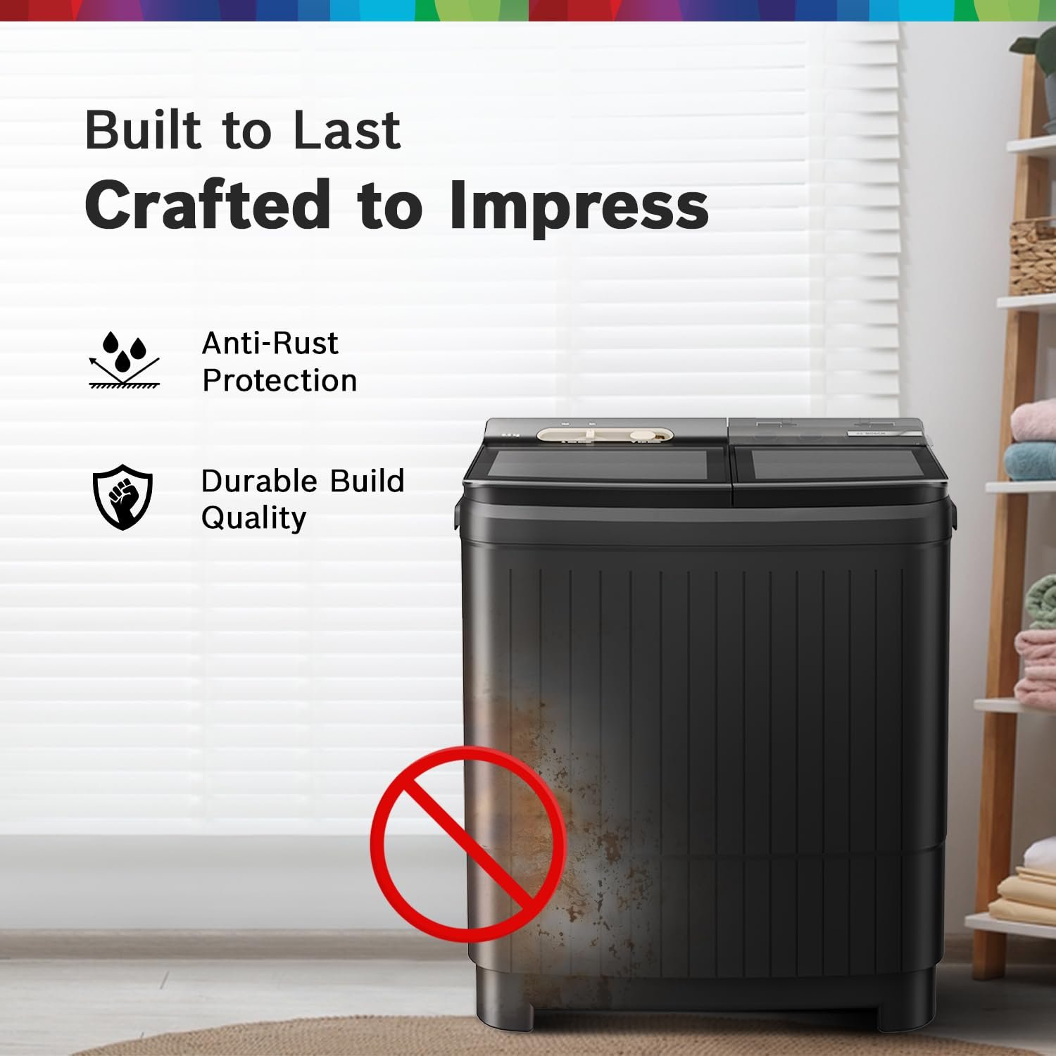 • Bosch 8.5 kg 5 Star Semi-Automatic Top Loading Washing Machine (2025 Model, WJG855G0IN, 4 Wash Programs, Anti-Rust Body, 1300 RPM Spin Speed, Black, 2 Years Comprehensive Warranty)