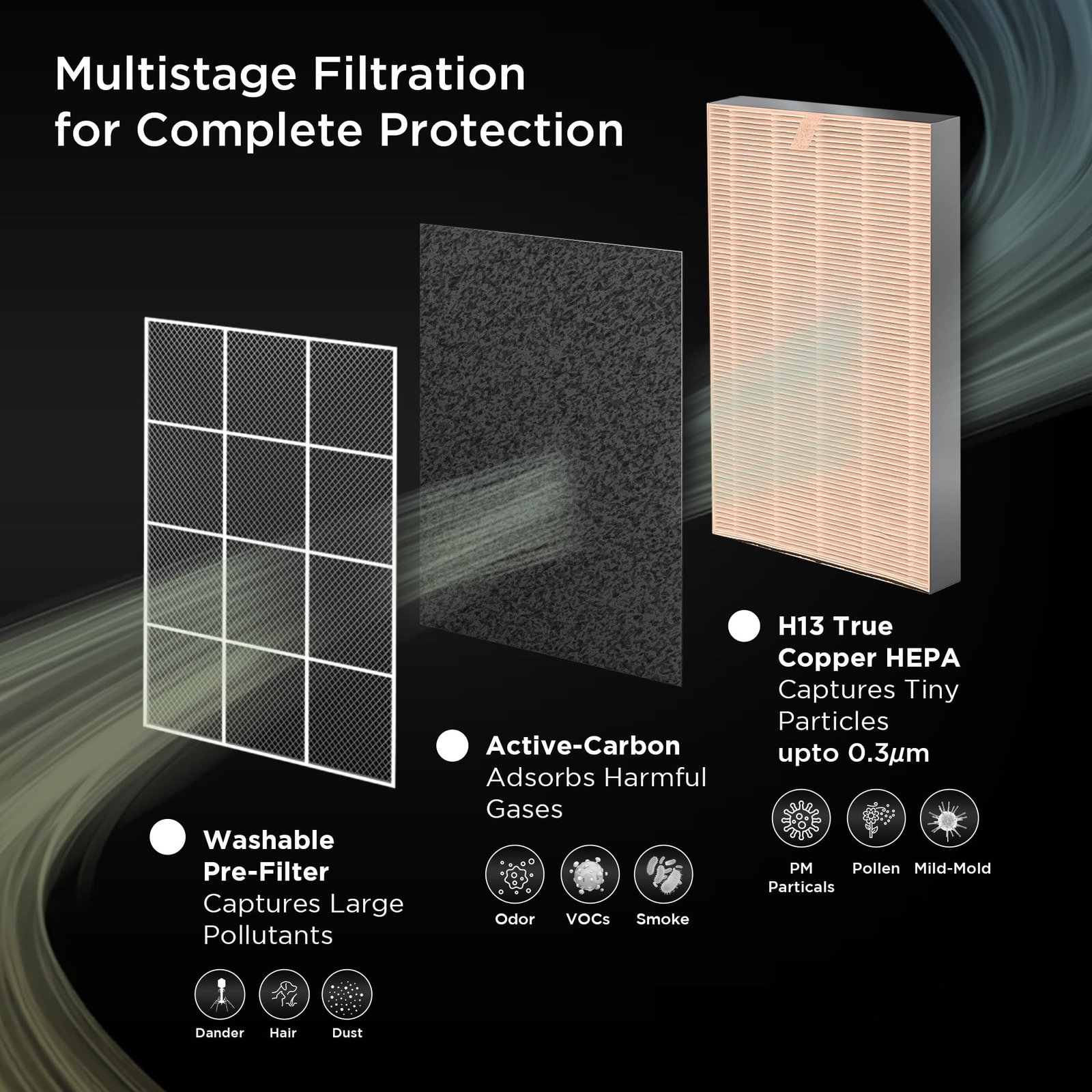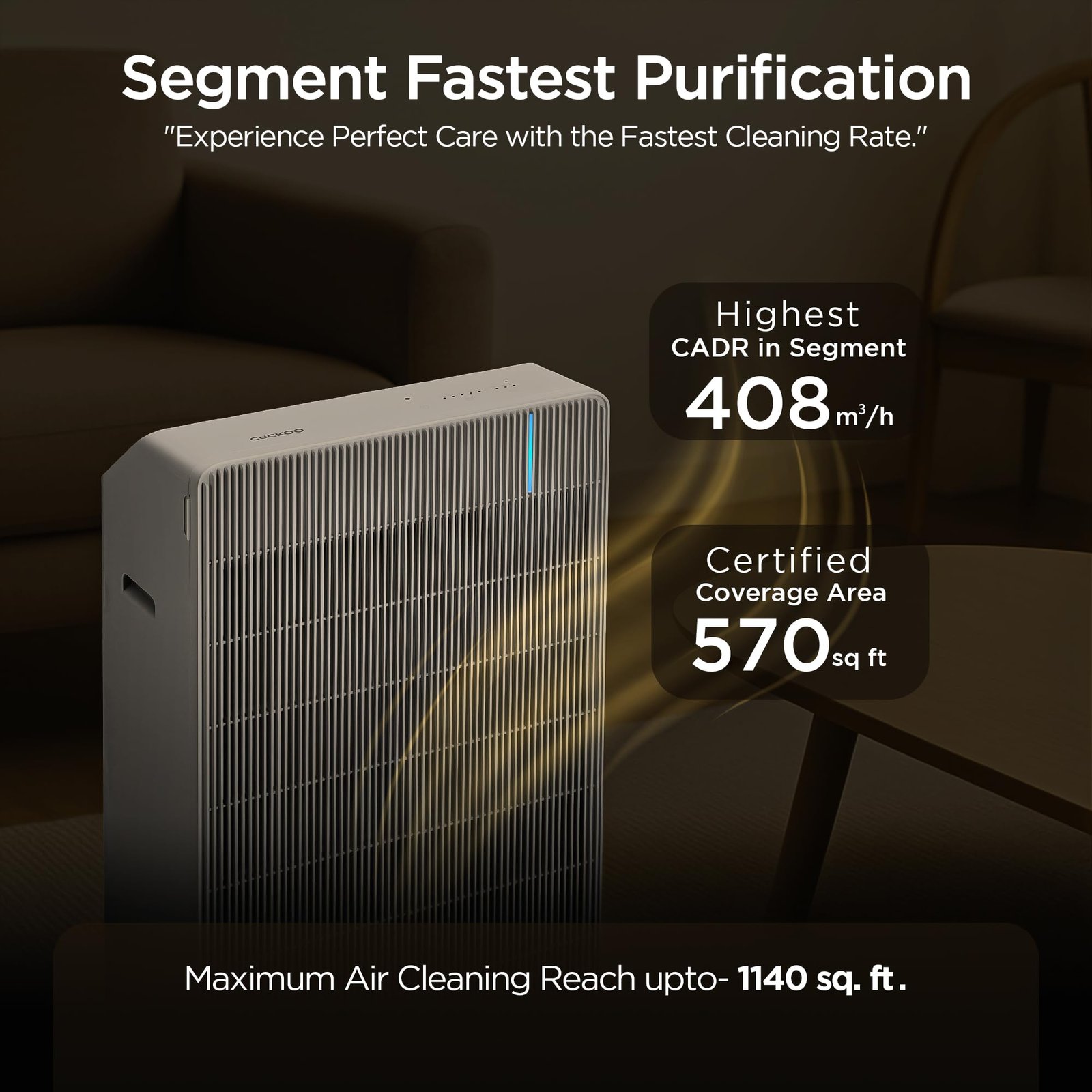 • CUCKOO Respure Copper Air Purifier For Home | 2 Yrs Filter & 8 Yrs Warranty on Motor | Biggest True HEPA Copper Filter | Coverage Area 570 Sqft | Suitable For Heavy Pollution Allergies & Pet Issues.