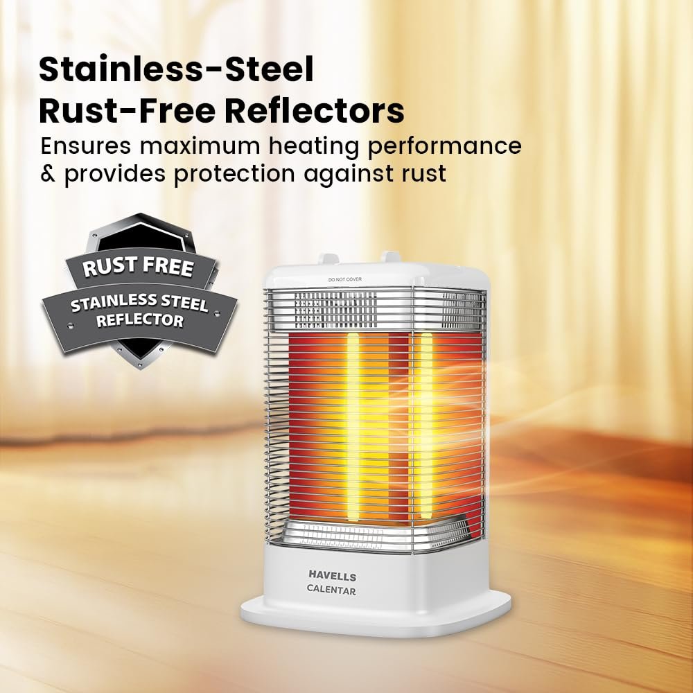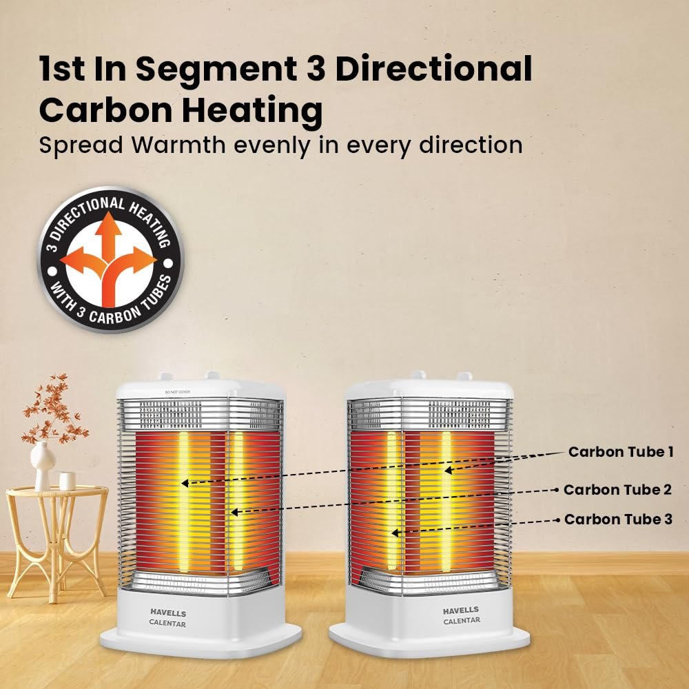 Havells Calenter 1050 Watt Room Heater With 3 Carbon Heating Tube| 3 Heat Setting| Tip Over Switch Protection| 3 Direction Heating| Upto 120min. Timer Setting| 2 Years Manufacturer Warranty (White)
