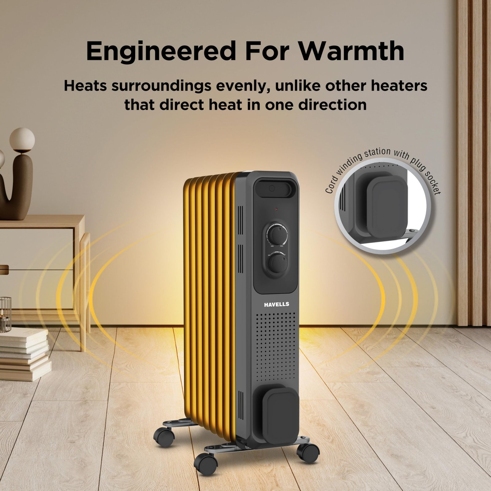 Havells Jade 9 Fin Oil Filled Room Heater (OFR)| New Generation U-Tech Fast Heating Fin with Superior Grade Oil for Long-Lasting Heat| Tilt & Auto Shut-Off 2 X Protection| 2 Years Door Step Warranty