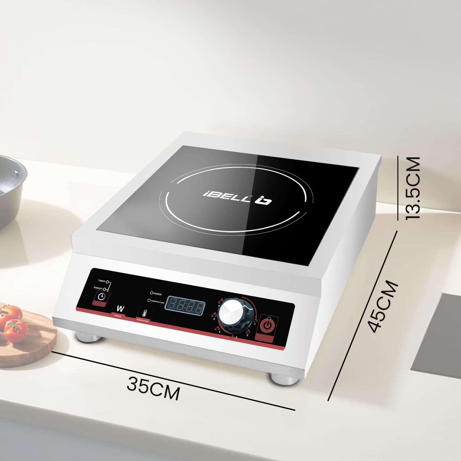 IBELL Induction Cooktop, Commercial Purpose & Heavy Duty, 3500W, Toughened Glass Top, Strong Metal Body, Auto-Off Protection, Timer Function, For Restaurants & Hotels (Silver)