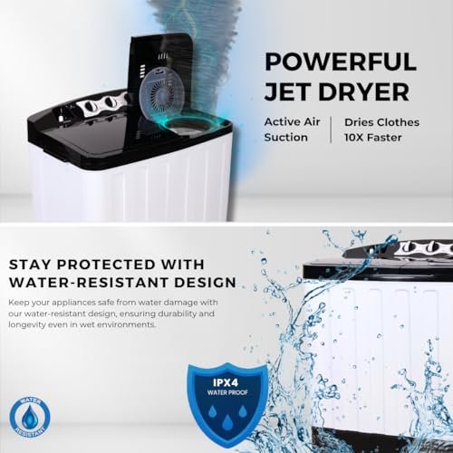 • SPECIAL JET DRYER – Featuring a powerful Jet Dry system, this semi-automatic washing machine delivers rapid spin drying that significantly reduces moisture from clothes. The high-speed spin tub uses air turbo drying technology to remove excess water faster—perfect for monsoons or daily quick washes. Achieve faster drying times and hassle-free laundry days with this quick dry washing machine.