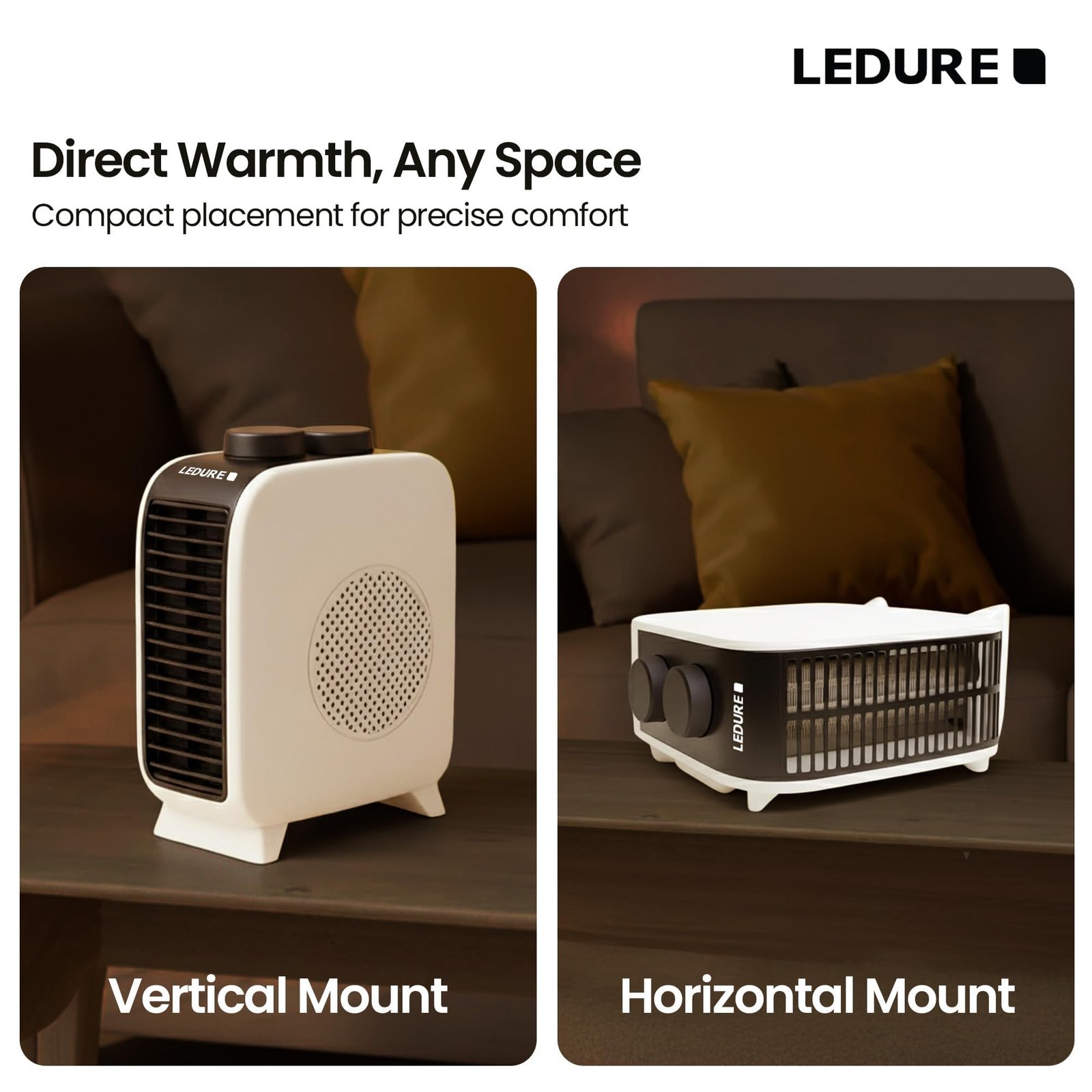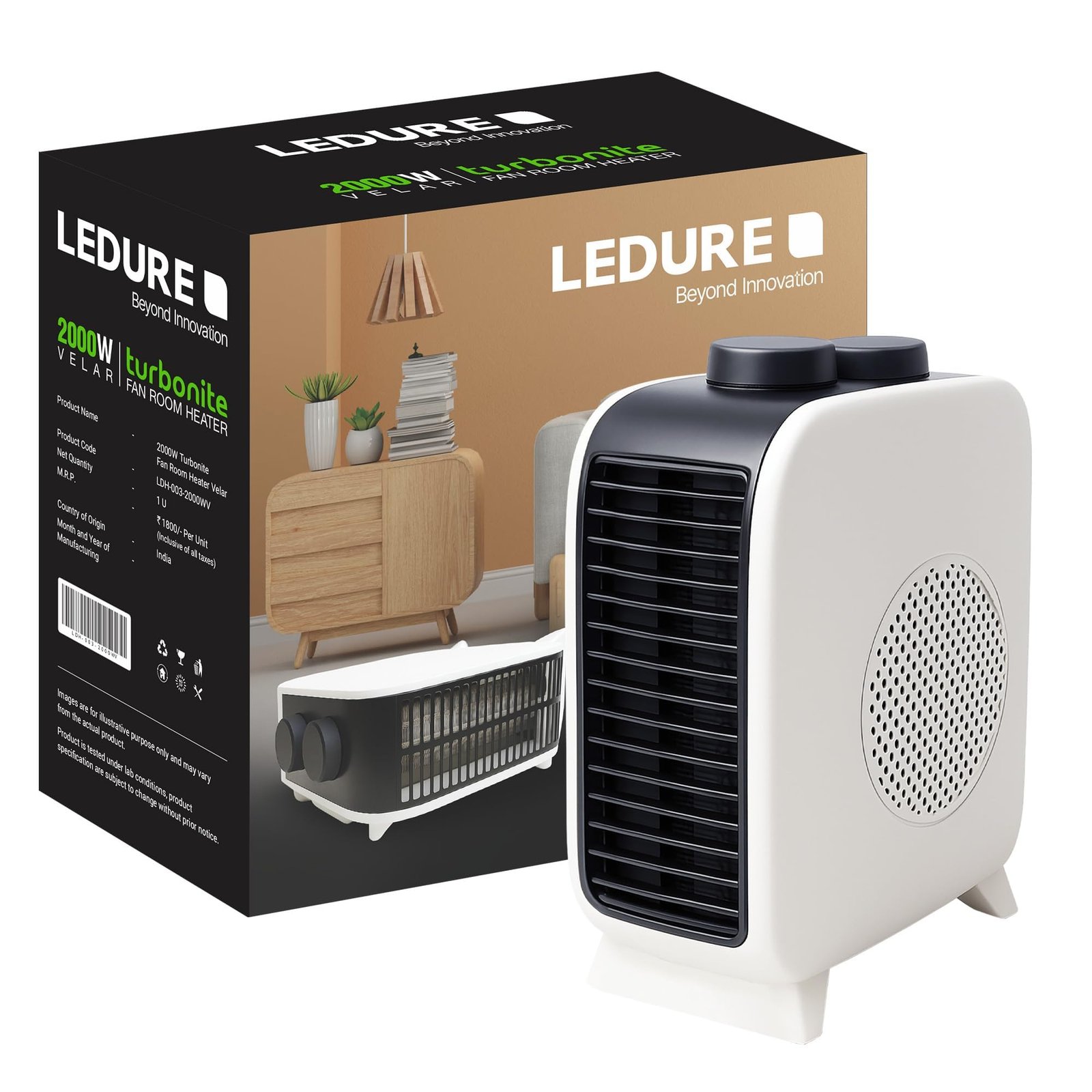 Details: LEDURE 2000W Velar Turbonite Fan Room Heater, a powerful, efficient, and safe heating solution for your home and workspace. Designed with advanced Turbo Fan Blower technology, this electric heater ensures rapid heat circulation, providing instant warmth even in large or open areas. Its dual heat settings (1000W / 2000W) allow you to control temperature output based on your comfort level and energy requirement. The adjustable thermostat control helps maintain consistent room temperature, while the overheat protection system and auto thermal cut-off ensure complete safety for you and your family. Built from premium quality heat-resistant ABS plastic, the LEDURE Velar Turbonite Room Heater features a cool-touch body and ergonomic handle, making it portable, lightweight, and safe for everyday use. Whether you need warmth in your bedroom, living room, study, office, workshop, or balcony, this versatile heater provides efficient heating performance indoors and outdoors. The low-noise motor ensures peaceful operation, perfect for nighttime comfort or quiet work environments. With a sleek modern design and white finish, the Velar Turbonite blends seamlessly with any interior décor. Backed by LEDURE’s trusted 1-year warranty, this room heater offers lasting reliability and safety, ensuring worry-free use through the coldest months. Choose LEDURE Velar Turbonite for an unmatched combination of power, performance, and protection — making your winters cozy, comfortable, and energy-efficient.