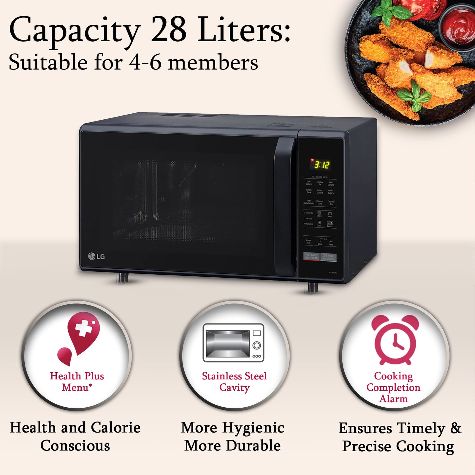 • LG 28 L Convection Microwave Oven (MC2846BV, Black, Health Plus Menu, Indian Cuisine, Tandoor Se, Steam Clean & Stainless Steel Cavity)
