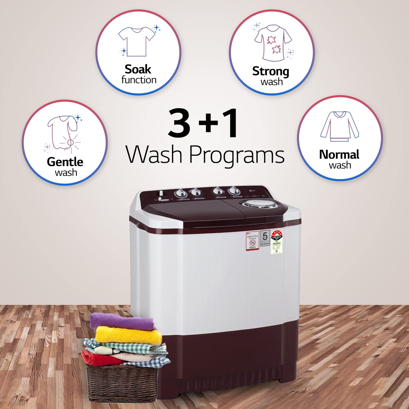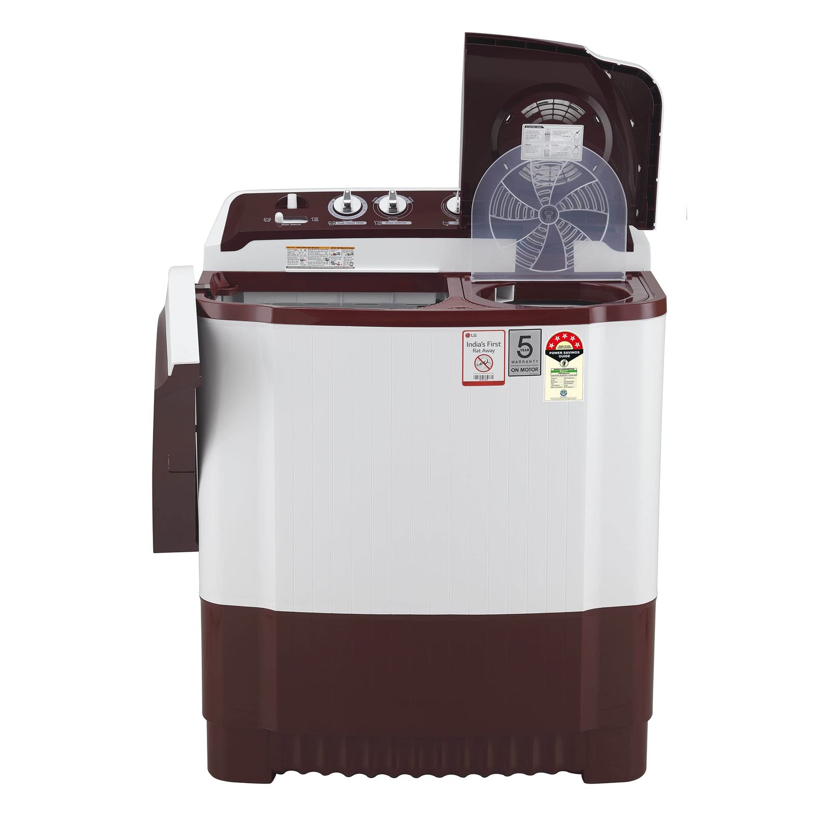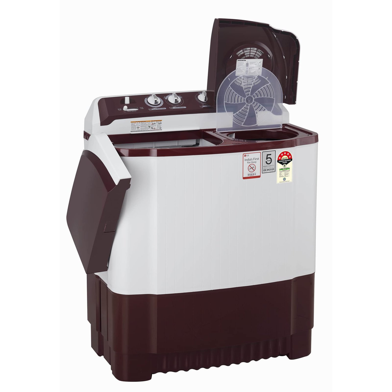 • LG 8.5 kg 5 Star Semi-Automatic Top Load Washing Machine (P8530SRAZ, Burgundy, Roller Jet Pulsator)