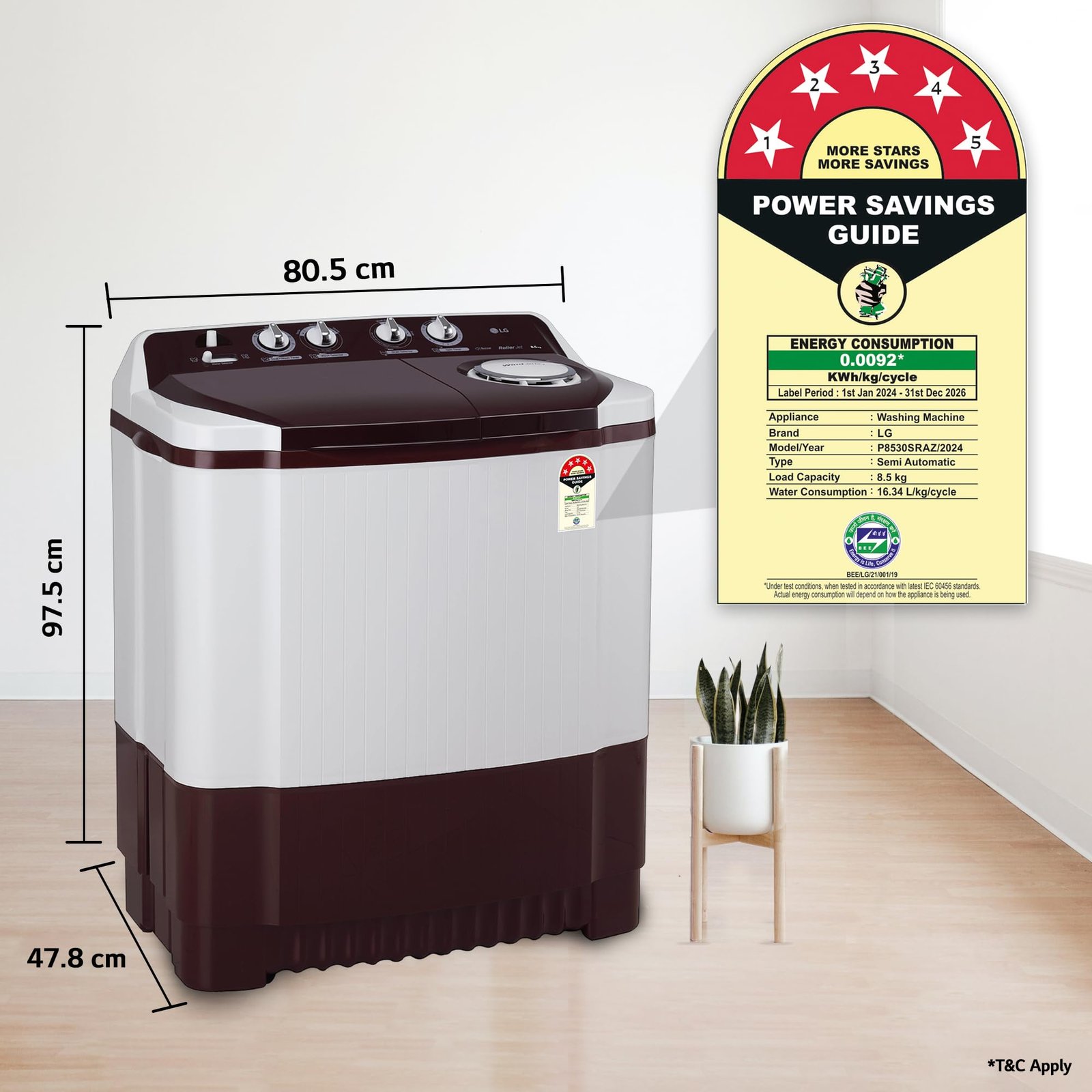 LG 8.5 kg 5 Star Semi-Automatic Top Load Washing Machine (P8530SRAZ, Burgundy, Roller Jet Pulsator)
