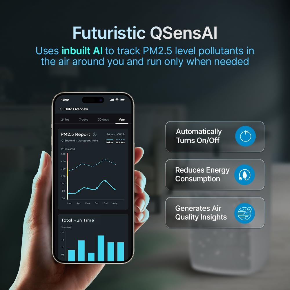 • Qubo Smart Air Purifier Q400 for Home by Hero Group | Up to 400 Sq Ft | 99.99% Allergen Removal | True HEPA13 | 9000 Hrs Filter Life | App & Voice Control