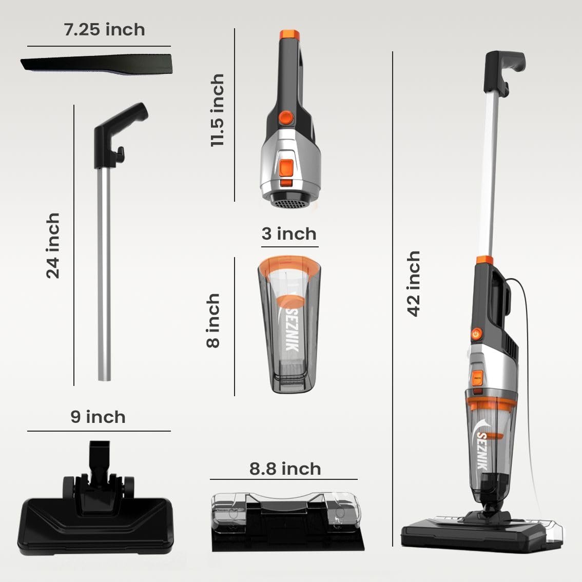 • SEZNIK Vacuum Cleaner for Home Use Wet and Dry | Floor Mopping & Wet Spills + Dry Vacuuming | Turbo Sweep 3-in-1 Handheld Vacuum Cleaner | Corded, 600W, 20kpa Suction | 200ml Water Tank (SZ-V07)