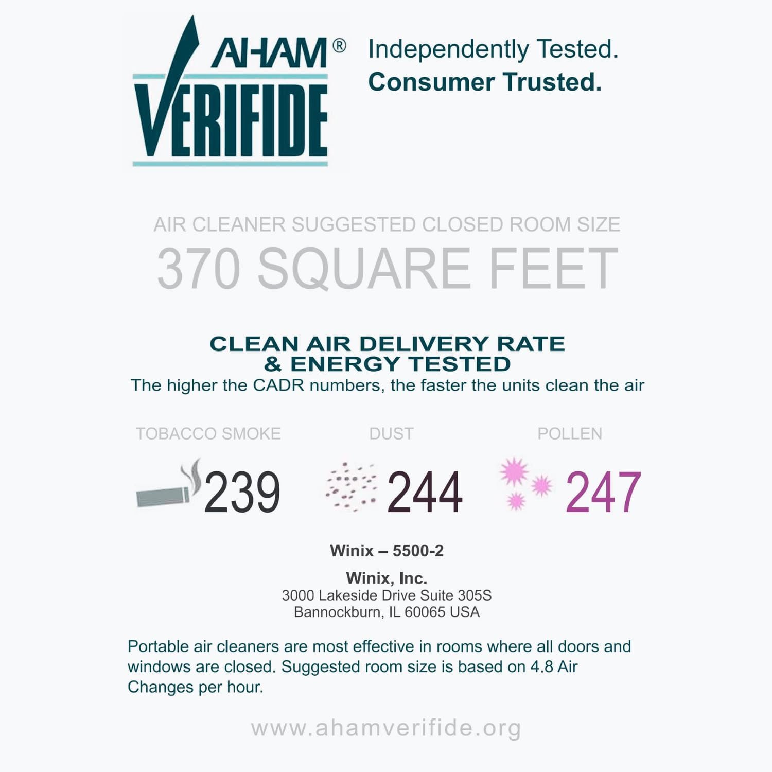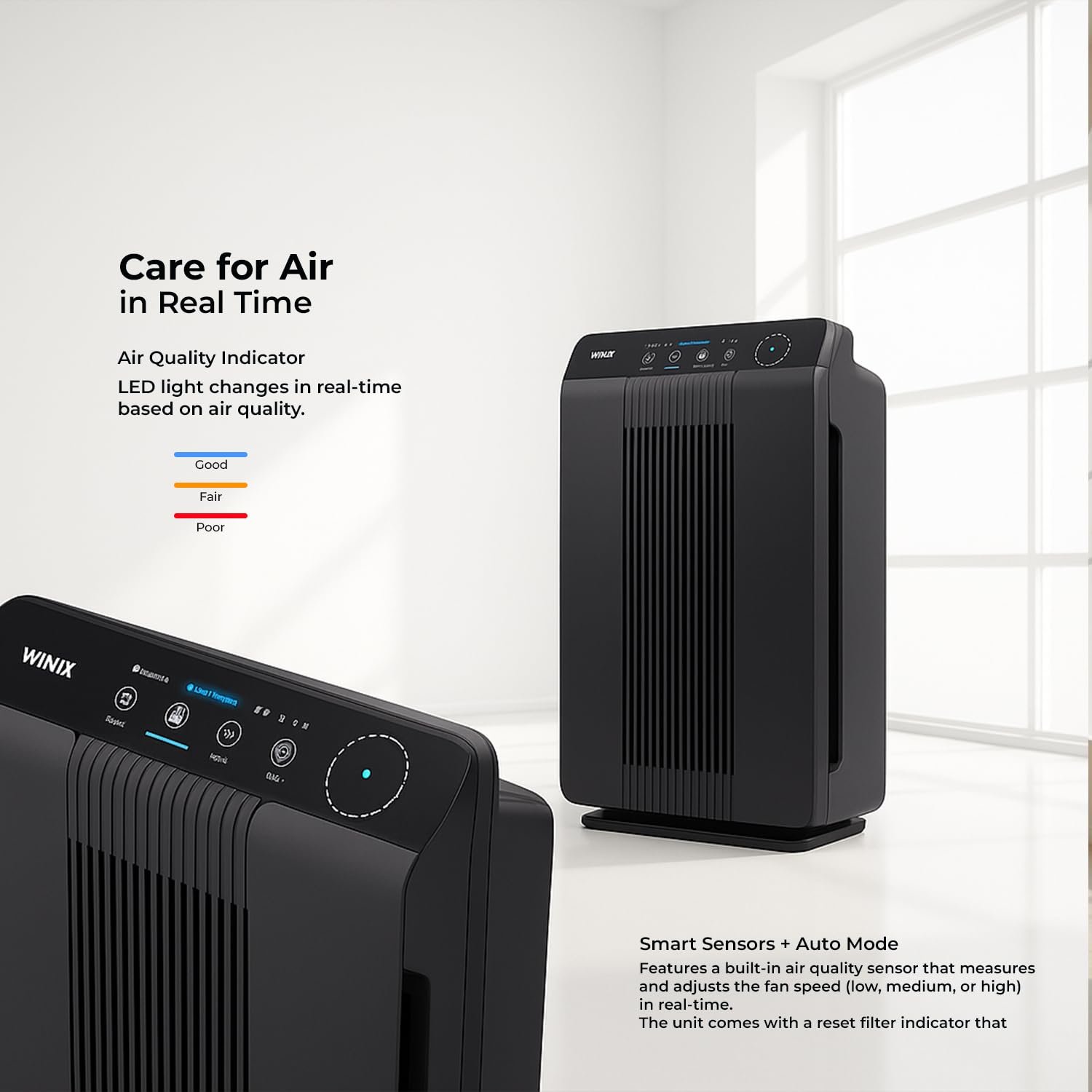 • WINIX 5500-2 Air Purifier for Home Large Room Up to 1881 Ft² in 1 Hr, True HEPA, High Deodorization Carbon Filter and Auto Mode, Captures Pet Allergies, Smoke, 2 YEAR WARRANTY